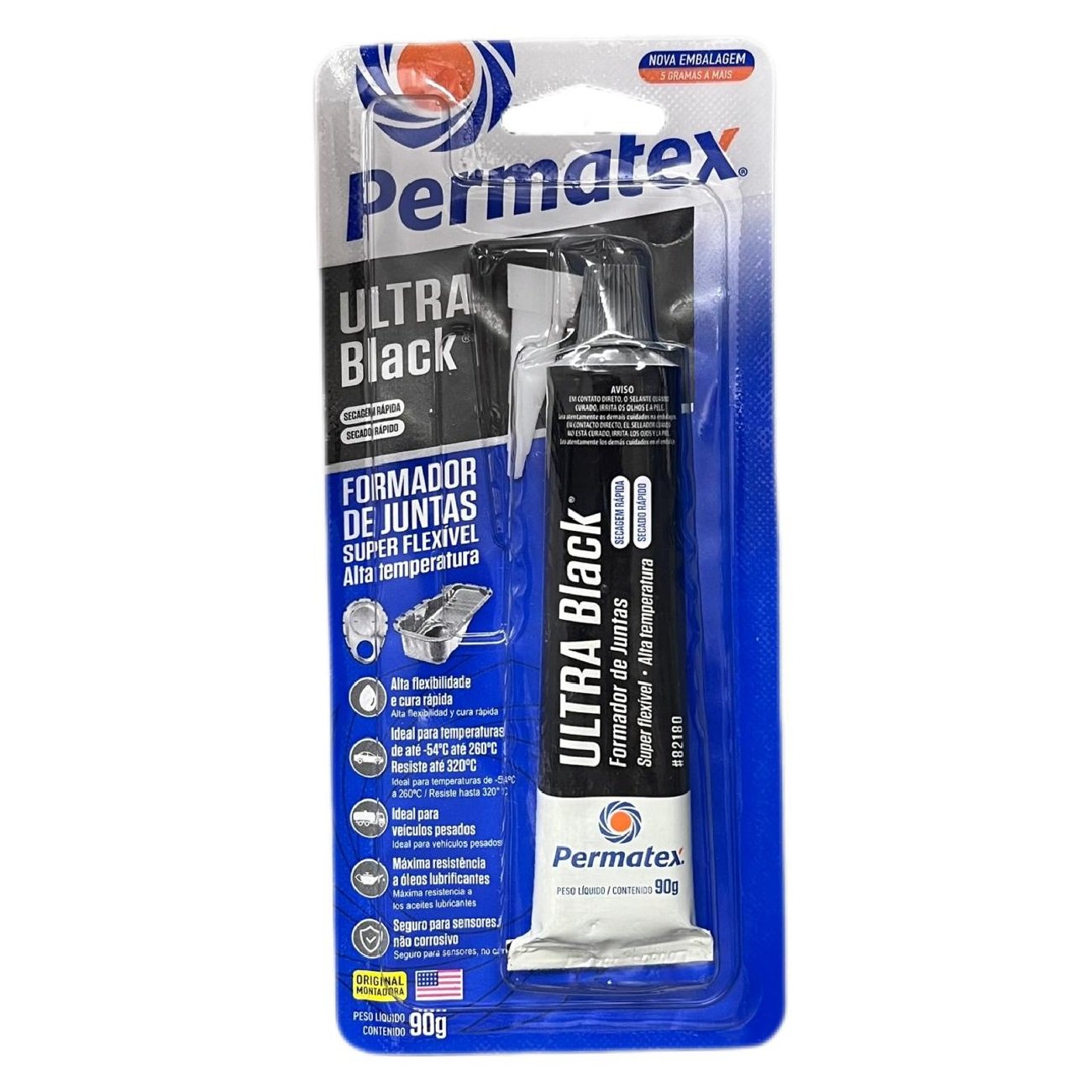 Permatex® Ultra Black® Formador De Juntas Cura Quando Em Contato Com A Umidade Do Ar. O Produto Fica Seco Ao Toque